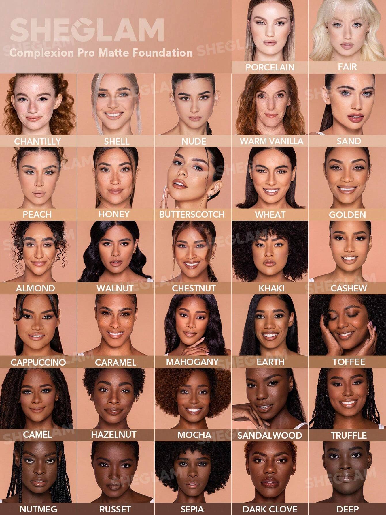 برای تجربه بهترین نتیجه از کرم پودر شیگلم Complexion Pro Long Lasting Breathable Matte Foundation، انتخاب رنگ صحیح حیاتی است. رنگبندی این محصول بسیار دقیق است و باید بر اساس “آندرتون” پوست خود تصمیم بگیرید: