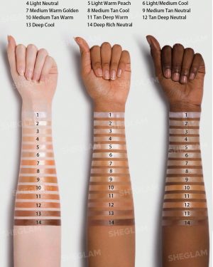 • کرم پودر شیگلم: در انواع بافت‌ها مات، براق و نیمه‌ مات با پوشش‌دهی سبک تا فول کاور، ماندگار، سبک و مناسب برای انواع پوست.